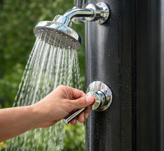 các LY18L01 is equipped with a large rain shower head that provides a refreshing shower experience with a wide spray. The shower head is adjustable up to 180° via its integrated ball joint, allowing users to customize the direction of the water flow. Whether you prefer a direct, focused stream or a gentler, more dispersed spray, the adjustable rain shower head delivers a satisfying and personalized experience. The large shower head adds to the luxurious feeling of the LY18L01, making it perfect for those who want to feel like they are under a gentle rainfall while enjoying a soothing outdoor shower. This feature enhances the overall shower experience, making it a desirable choice for homeowners and businesses alike.