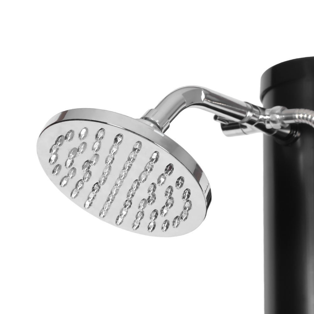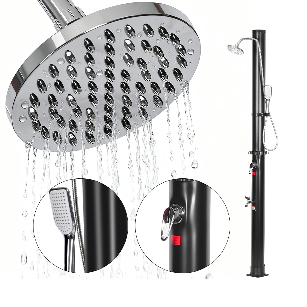 Vòi sen năng lượng mặt trời vòi sen sân vườn ngoài trời LY18L05-HB 18L hai phần này bao gồm một kết nối vòi tưới vườn tiện lợi để dễ dàng đổ đầy và một nút xả cho phép xả nước nhanh chóng khi chuẩn bị thiết bị để bảo quản vào mùa đông. Sau khi đầy ống vòi hoa sen, nước sẽ nóng lên một cách tự nhiên bằng năng lượng mặt trời và vòi trộn tích hợp giúp bạn dễ dàng điều chỉnh nước đến nhiệt độ ưa thích để có trải nghiệm tắm thoải mái. Tất cả các bộ phận đều được gắn chặt bằng vít để đảm bảo độ bền và để vận hành an toàn, vòi hoa sen phải được neo chặt xuống đất. Các hướng dẫn rõ ràng, đa ngôn ngữ được cung cấp để hướng dẫn bạn cài đặt và sử dụng, giúp quá trình thiết lập trở nên đơn giản và đáng tin cậy.