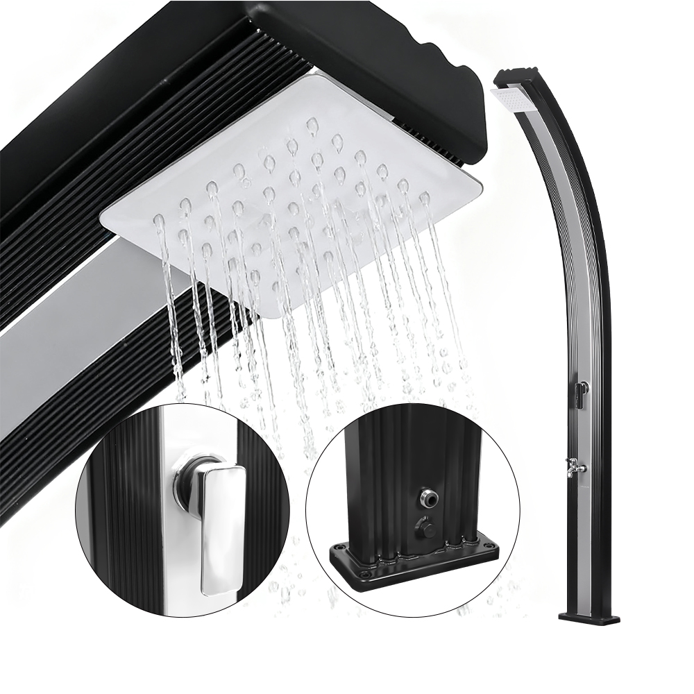 Vòi sen năng lượng mặt trời bể bơi uốn cong bằng nhôm LY30L01 này có ống tắm bằng nhôm 30 lít, cung cấp nhiều nước cho trải nghiệm tắm thoải mái và thú vị, dù ở trong vườn, bên hồ bơi hay ở nơi khác. Vòi trộn một đòn bẩy cho phép điều chỉnh nhiệt độ nước nhanh chóng và dễ dàng, giúp bạn dễ dàng đặt nhiệt độ lý tưởng theo ý thích, nâng cao trải nghiệm tổng thể của người dùng. Ống tắm bằng nhôm không chỉ có công suất dồi dào mà còn có độ bền và khả năng dẫn nhiệt tuyệt vời, giúp vòi sen năng lượng mặt trời cho bể bơi ngoài trời uốn cong bằng nhôm LY30L01 trở nên hiệu quả và tiện lợi hơn.