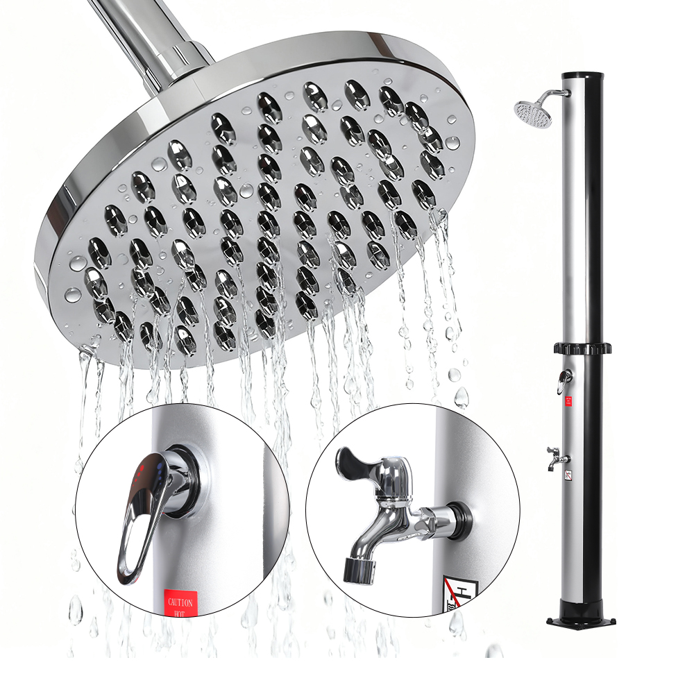 Vòi sen năng lượng mặt trời chống nước và điều chỉnh LY35L02-CR này kết hợp tính thực tế với sự thoải mái, có ống tắm lớn làm nóng lên đến khoảng 60°C chỉ bằng ánh sáng mặt trời, loại bỏ nhu cầu sử dụng điện. Chỉ cần gắn một vòi tưới vườn thông thường để lấp đầy ống vòi hoa sen, giúp cả gia đình dễ dàng tận hưởng cơn tắm sảng khoái ngoài trời trong vườn, bên hồ bơi hoặc khi đi cắm trại. Một khay kim loại tiện lợi giúp bạn dễ dàng lấy những thứ cần thiết khi tắm như xà phòng hoặc dầu gội, đồng thời rãnh thoát nước được thiết kế chu đáo ở phía dưới giúp ngăn nước tích tụ, giữ cho khu vực này sạch sẽ và an toàn. Để tăng thêm sự thoải mái, đầu vòi hoa sen có thể điều chỉnh cho phép điều khiển tia nước linh hoạt, cho phép bạn điều chỉnh dòng chảy theo sở thích cá nhân. Vòi phun kiểu rừng nhiệt đới mang lại trải nghiệm tắm êm dịu, cảm giác tự nhiên, biến mỗi lần xả thành giây phút thư giãn.