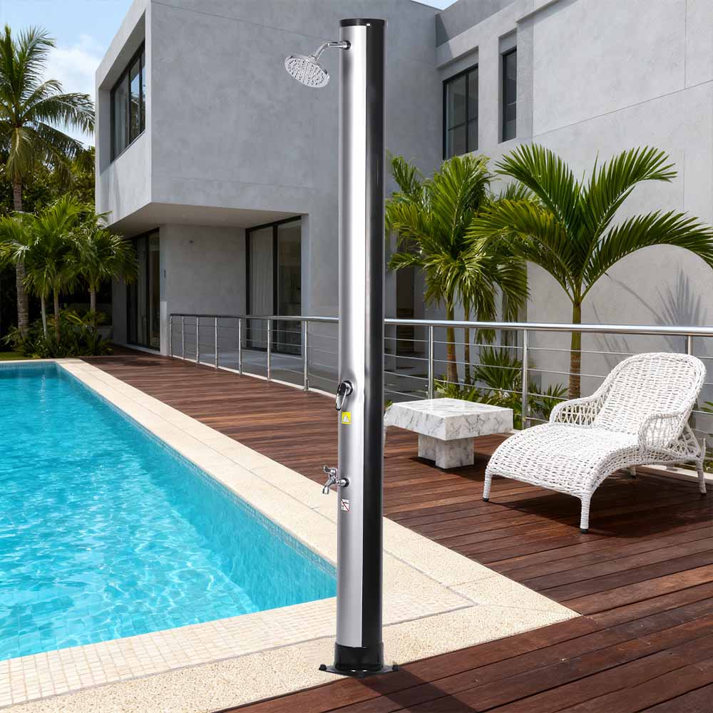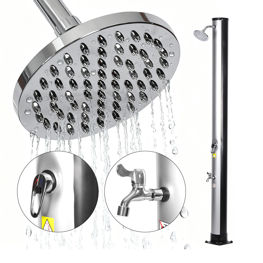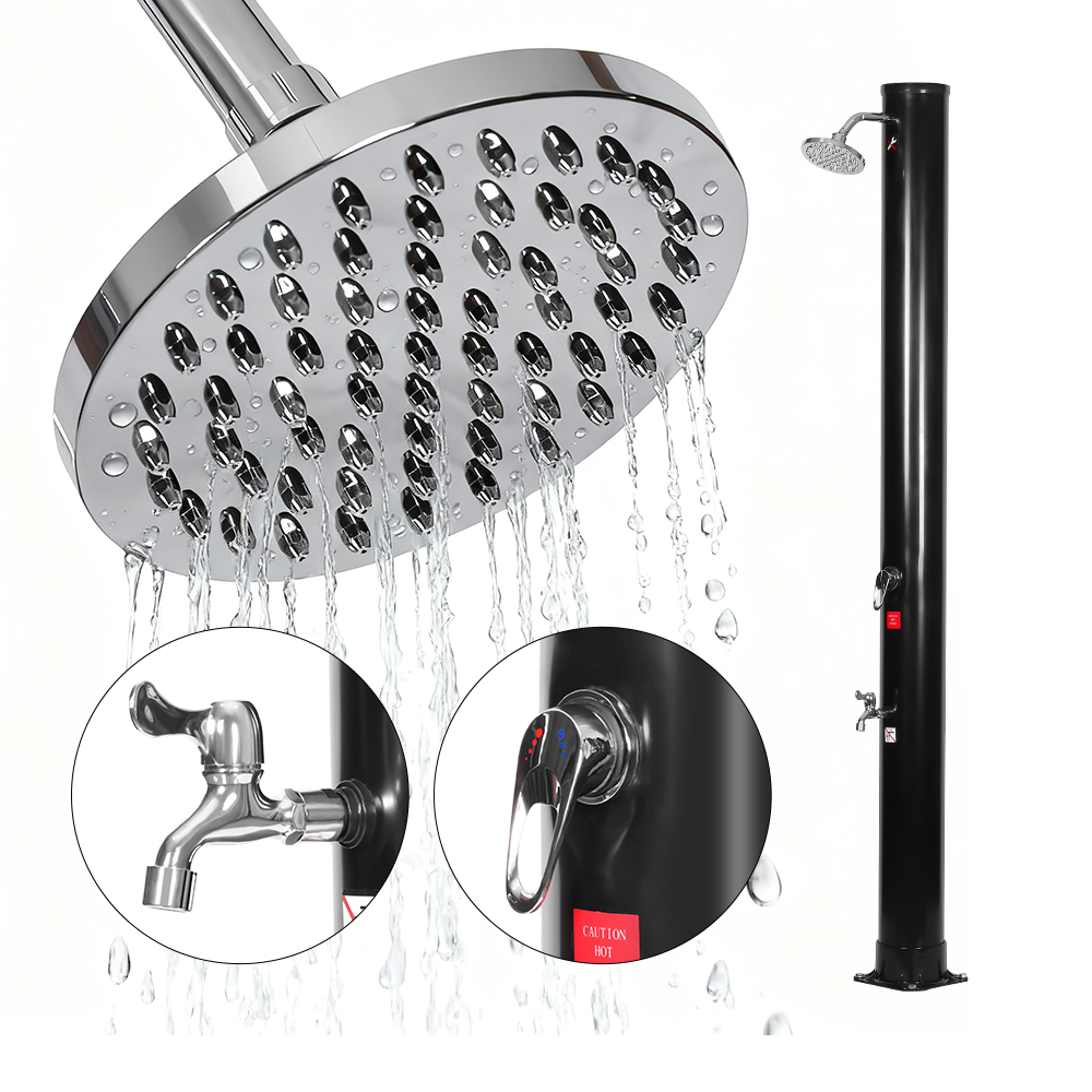 Ống tắm có kích thước rộng rãi của vòi sen năng lượng mặt trời thân thiện với môi trường ngoài trời di động LY35L06 này khai thác sức mạnh của mặt trời để làm nóng nước lên đến 60°C, không cần điện và cung cấp giải pháp thân thiện với môi trường để tắm ngoài trời. Chỉ cần kết nối một vòi tưới vườn tiêu chuẩn để đổ đầy ống tắm và cả gia đình có thể tận hưởng vòi sen phục hồi sức sống trong vườn, bên hồ bơi hoặc trong chuyến đi cắm trại. Một khay kim loại tích hợp tiện dụng giúp bạn dễ dàng lấy những thứ cần thiết khi tắm như xà phòng và dầu gội, đồng thời các khe thoát nước ở phía dưới ngăn nước đọng lại, đảm bảo trải nghiệm sạch sẽ và dễ chịu. Đầu vòi sen xoay 360°, được gắn trên khớp bi tích hợp, cho phép bạn điều chỉnh hướng dòng nước một cách dễ dàng, tạo cảm giác làm mát thú vị, trong khi vòi rửa chân bổ sung giúp bạn làm sạch nhanh chóng một cách thuận tiện. Được thiết kế để thuận tiện, vòi sen này có thể dễ dàng tháo rời để cất giữ nhỏ gọn, tiết kiệm không gian khi trái mùa hoặc để vận chuyển khi đi du lịch.